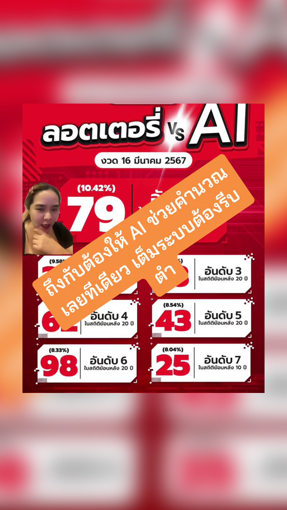 ** วิดีโอคลิปด้านบนใช้เพื่ออ้างอิงถึงเทรนด์การใช้ AI ในการช่วยเลือกเลขเท่านั้น เนื้อหาและบุคคลที่ปรากฏในคลิปไม่ได้มีความเกี่ยวข้องกับ Lucky Hora